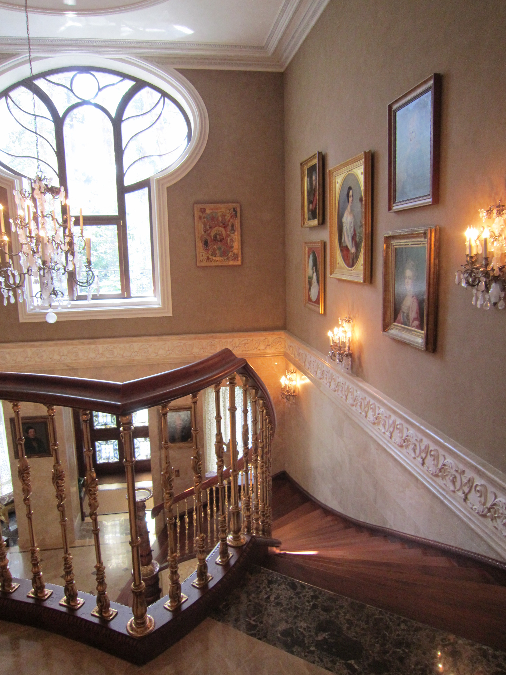 Located in one of Moscow's most exclusive suburbs, this country manor steeped in history, has a romantic enchantment that is inherent in its architecture. A blend of 19th Century Karelian-Birch and art deco touches, detailed in the bespoke woodwork, coffered ceilings, elaborate cornices and balustrades throughout the residence. Classified as a quintessential 'Dacha', this traditional home has some of the finest reproductions of old masters especially commissioned from an Italian workshop that specialises in Renaissance portraiture